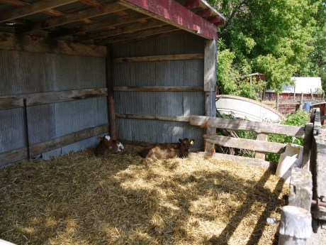 Dairy farmers manage the separation of mom and calf quite differently from cattle ranchers. Dairy calves, unlike beef calves, can’t possibly be allowed to nurse for anything like a normal length of time. The whole point of a dairy farm is to sell the milk that cows produce, and every drop of milk that goes into a calf’s mouth is a drop not sold. All dairies, from the biggest conventional CAFOs to the smallest family farms, separate calves from their moms very young, and when I say very young, I mean usually within the first twenty-four hours after birth. However, all the research that I’ve seen on this topic, including that published by proponents of animal welfare like Bernard Rollin, states that early separation is actually much less stressful than letting them stay together longer, only to split them up after they’ve bonded. Pairs that are split within the first day of the calf’s life don’t usually show much sign of caring.